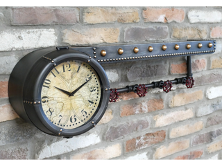 Wall Shelf With Clock & Hooks - Industrial Style with Map Design