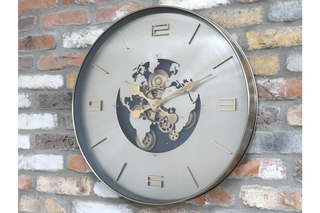 Wall Clock With Moving Cogs & World Map Design