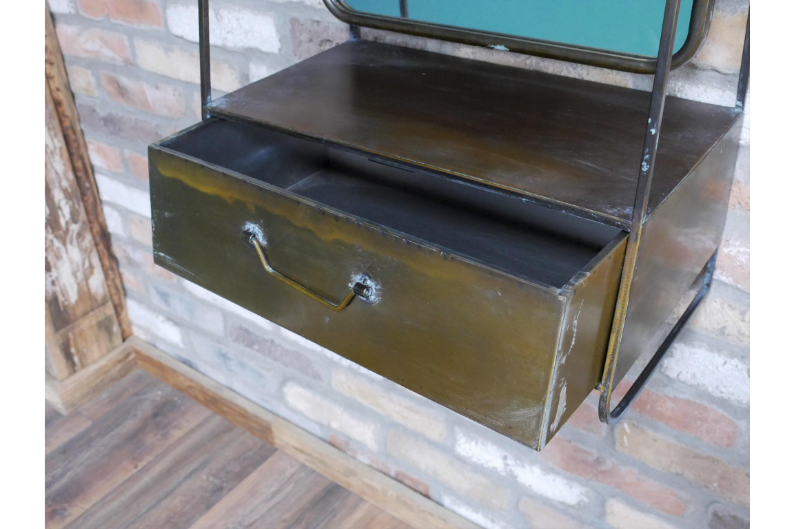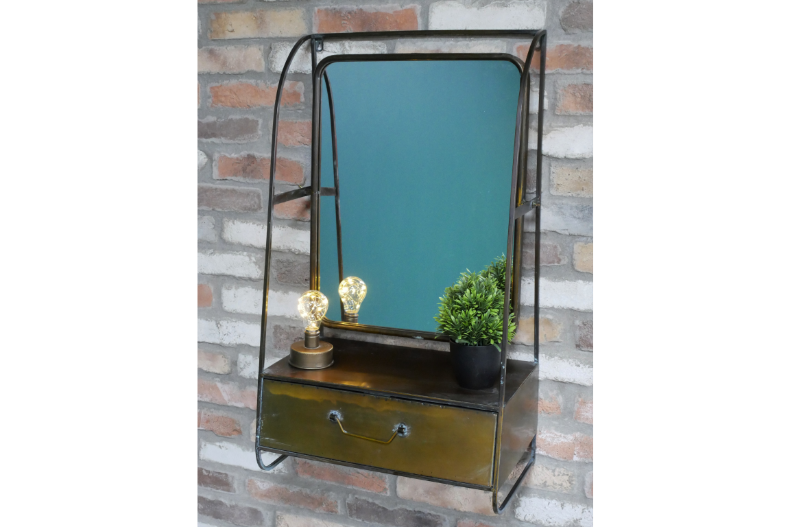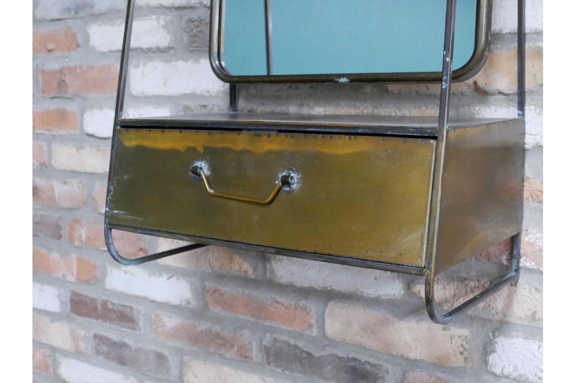 Bronze Effect Wall Mirror with Drawer, Vintage Style Decor