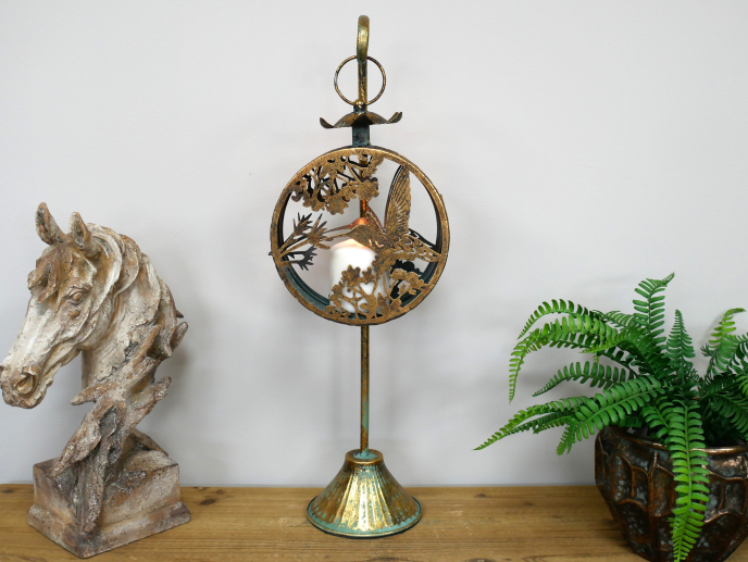 Elevate your interior with this elegant bird-design candle holder, meticulously crafted from durable metal. Standing 60cm tall with a refined 19cm width and 15cm depth, it offers a graceful presence that complements sophisticated home décor while providing a subtle, ambient glow.