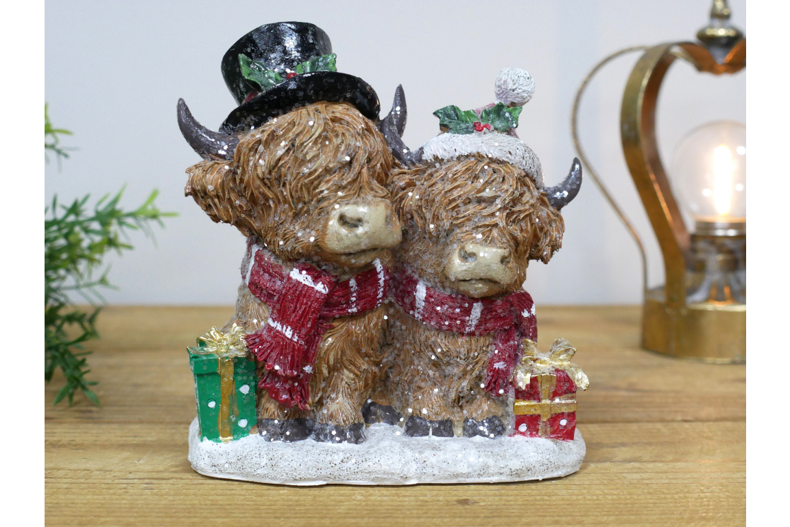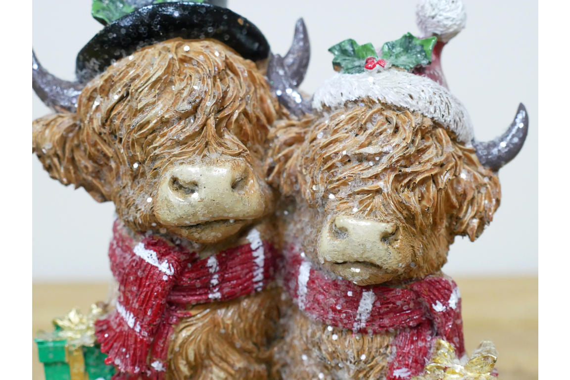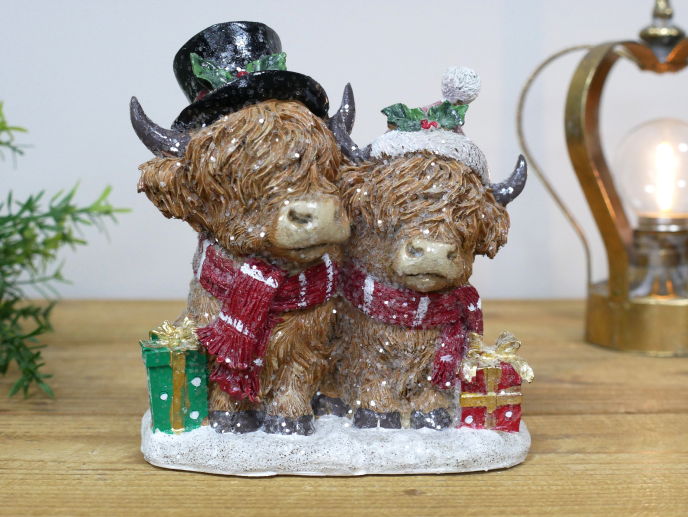 Bring charm to your holiday décor with our Festive Highland Cows — a delightful duo (or trio!) of woolly Christmas characters that instantly warm any space. At approx. 14 × 13 × 9 cm and weighing just 0.36 kg, they’re perfect for mantels, side tables, or nestled among your festive greens. Their handcrafted details and rustic appeal add a touch of countryside magic to your Christmas display.